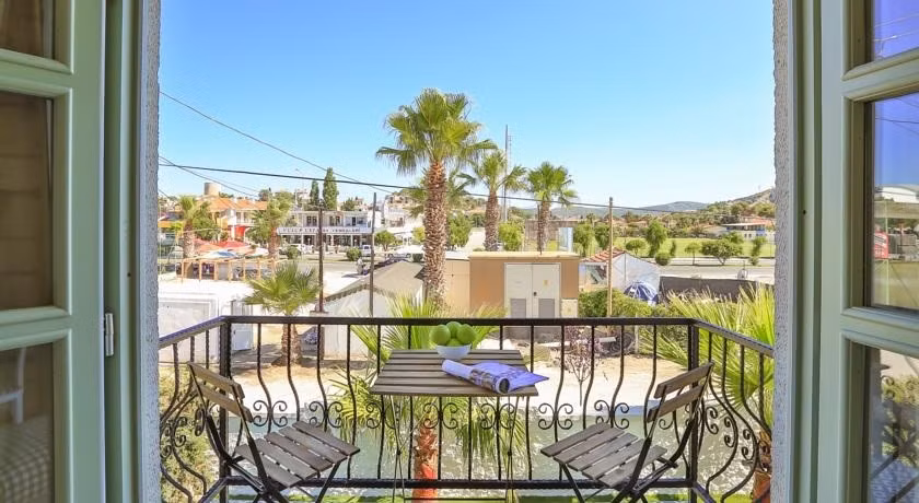Palmiye ağaçlarının bulunduğu yeşil bir bahçe, Alaçati tipi taş dekorasyon, ruhu iyileştiren müzik eşliğinde kahvaltı ... Palas Alaçati'nin tüm odalarında TV, minibar, özel banyo, klima ve ücretsiz Wi-Fi hizmeti vardır. Bazı odalarımız balkonlu, bazıları oriel pencere veya teraslıdır. Ayrıca şömineli ve jakuzili odalarımız mevcuttur. Kafe, restoran ve barlar 400 metre uzaklıktadır. Misafirlerimiz oda servisi ve 24 saat açık resepsiyondan yararlanabilirler. İzmir Adnan Menderes Havaalanı 88 km uzaklıktadır. Talep üzerine ve ek ücret karşılığında ulaşım servisi de sağlayabiliriz. Senin için bekleniyor. Palmiye ağaçlarının bulunduğu yeşil bir bahçe, Alaçati tipi taş dekorasyon, ruhu iyileştiren müzik eşliğinde kahvaltı ... Palas Alaçati'nin tüm odalarında TV, minibar, özel banyo, klima ve ücretsiz Wi-Fi hizmeti vardır. Bazı odalarımız balkonlu, bazıları oriel pencere veya teraslıdır. Ayrıca şömineli ve jakuzili odalarımız mevcuttur. Kafe, restoran ve barlar 400 metre uzaklıktadır. Misafirlerimiz oda servisi ve 24 saat açık resepsiyondan yararlanabilirler. İzmir Adnan Menderes Havaalanı 88 km uzaklıktadır. Talep üzerine ve ek ücret karşılığında ulaşım servisi de sağlayabiliriz. Senin için bekleniyor. Tarihi taş evleri ile ünlü Palas Alaçatı, geniş ve konforlu odaları, güler yüzlü hizmeti ve yemyeşil bir bahçe ile iç içe huzurlu bir atmosferde hizmet veriyor. Tesis, Ilıca Otogarı’na 3 km mesafede konumlanıyor. Basit Konaklama Belgesi 2022-35-0612