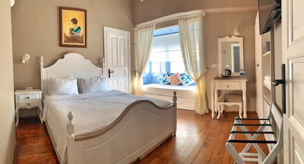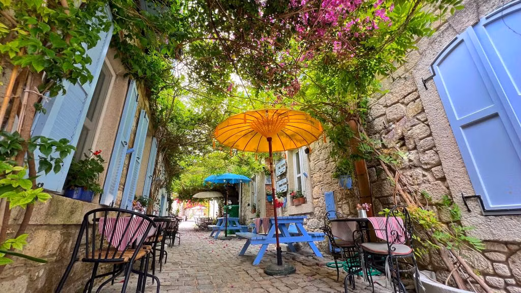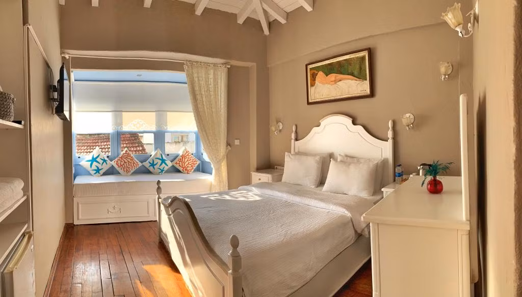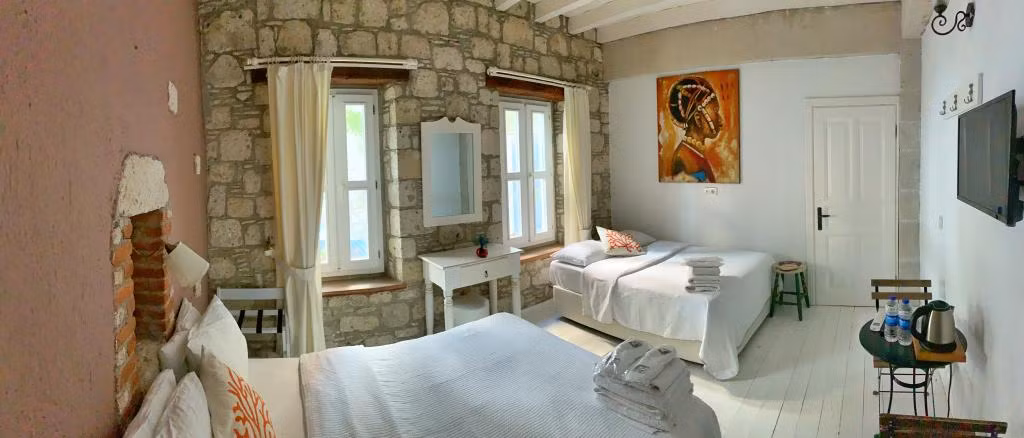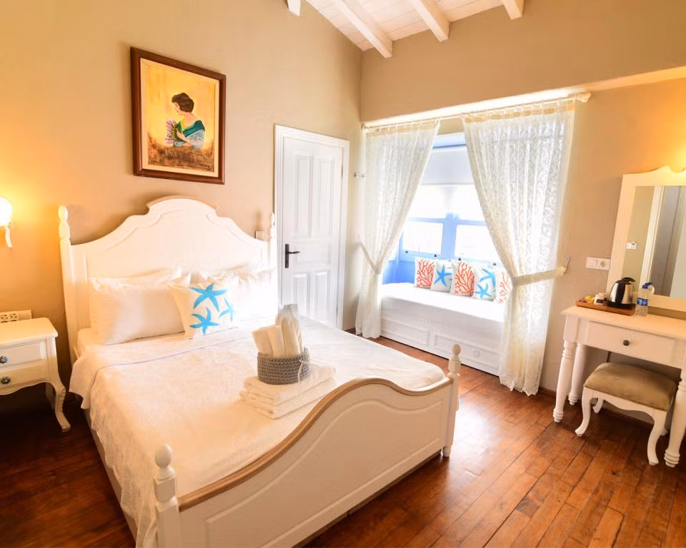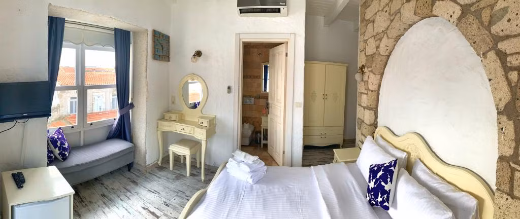 Alaçatı’da yer alan Maison d'Azur, bölgenin geleneksel taş mimarisine uygun olarak yapılmış bir binada hizmet veriyor. Taş duvarlı odalarında otantik bir atmosfer sunan tesis, tüm misafirlerine ev konforunda konaklayabilecekleri güzel ortamlar sunuyor. Alaçatı restoranları ve bu bölgedeki eğlence mekanları ile iç içe olan Maison d'Azur Alaçatı, avantajlı konumu ve Alaçatı’da gezilecek yerlere yakınlığı ile öne çıkıyor. Karşılıklı iki binadan oluşan tesis, kendine has şık ve ferah bir dekorasyona sahip. Tesiste TV odası, kış bahçesi ve restoran gibi ortak alanlar yer alıyor. Tesisin restoranında her sabah lezzetli ve taze ürünler ile hazırlanmış zengin bir kahvaltı servis ediliyor. Tesiste konaklayan misafirler el yapımı reçeller ile zenginleşen kahvaltı ile güne keyifli bir başlangıç yapabilir. Maison d'Azur Alaçatı’da kaldığı günler boyunca Alaçatı çevresinde gezilecek yerlere gitmek isteyen misafirler tesisin bisiklet kiralama hizmetinden yararlanabilir. Tesisten Çeşme plajlarına ulaşmak da mümkün. Maison d’Azur Alaçatı, tarihi taş evleri ve yılın büyük bir bölümünde rüzgar alması sayesinde rüzgar sörfüne elverişli plajları ile ünlü Alaçatı’da konumlanıyor. Alaçatı köy meydanına yalnızca 1 dakikalık yürüme mesafesinde yer alan tesis, karşılıklı iki binadan oluşuyor. Bölgenin geleneksel taş mimarisine uygun şekilde inşa edilen tesis, taş duvarlı odalarında misafirlerin ihtiyaç duyabileceği pek çok olanağa sahip. Tüm odalarında; klima, ücretsiz Wi-Fi, TV, buklet banyo malzemeleri ve 24 saat sıcak su sağlanan özel banyo mevcut. Sabahları el yapımı reçeller ve hamur işleri ile zenginleştirilen kendine özgü köy kahvaltısı sayesinde güne enerjik bir başlangıç yapabilirsiniz. Misafirlerin konforuna yönelik sunulan hizmetler arasında ortak TV alanı, kablosuz internet bağlantısı, bisiklet kiralama, 24 saat resepsiyon, restoran, ücretli servis hizmeti gibi olanaklar bulunuyor. Ilıca plajına 3 km, Ayayorgi ve diğer Çeşme plajlarına 8 km mesafede bulunan Maison D-Azur Alaçatı, İzmir Adnan Menderes Havalimanı’na ise 80 km mesafede yer alıyor. Taş binaları ve rüzgar sörfüne uygun plajları ile ünlü Alaçatı'da yer alan Maison d'Azur Alaçatı, Ilıca Plajı'na 3 km uzaklıkta yer alıyor. Alaçatı meydanına 1 dakikalık yürüme mesafesinde bulunan tesis, konforlu bir konaklama deneyimi vadediyor. Basit Konaklama Belgesi 2022-35-0824