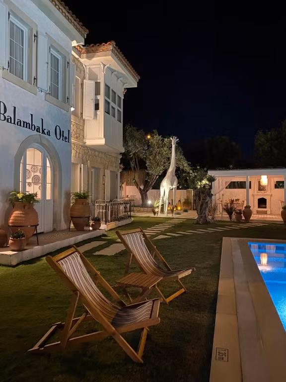 Otelimize sadece +12 yaş çocuk misafirlerimiz kabul edilmektedir. Otelimiz adını, bölgeye adını veren, “Balambaka Tepesi“nden almaktadır. Bal damlayan bağların yerini, zeytin ağaçlarına bıraktığı otelimiz Hacımemiş Mahallesi‘ndedir. Zeytin ağaçları ile çevrili Balambaka Otel, açık yüzme havuzu ve çok geniş bir bahçeye sahiptir. Otelin zarif bir şekilde dekore edilmiş klimalı odalarında el yapımı mobilyalar ve düz ekran TV bulunmaktadır. Balambaka Otel'in odaları toprak renkleri ve el yapımı çini ayna ve tabaklarla dekore edilmiştir. Tüm odalarda minibar mevcuttur. Bazı odalarda cumbalı pencere vardır. Ege tarzı kahvaltıda elle toplanmış zeytin, yerel zeytinyağı, ev yapımı reçeller ve ekmek bulabilirsiniz. Ayrıca, yürüyerek 5 dakika mesafedeki Alaçatı şehir merkezinde yerel ve uluslararası yemekler sunan birçok bar ve restoran bulunmaktadır. Havuz alanı güneşlenmek ve dinlenmek için idealdir. Otelimize sadece +12 yaş çocuk misafirlerimiz kabul edilmektedir. Otelimiz adını, bölgeye adını veren, “Balambaka Tepesi“nden almaktadır. Bal damlayan bağların yerini, zeytin ağaçlarına bıraktığı otelimiz Hacımemiş Mahallesi‘ndedir. Zeytin ağaçları ile çevrili Balambaka Otel, açık yüzme havuzu ve çok geniş bir bahçeye sahiptir. Otelin zarif bir şekilde dekore edilmiş klimalı odalarında el yapımı mobilyalar ve düz ekran TV bulunmaktadır. Balambaka Otel'in odaları toprak renkleri ve el yapımı çini ayna ve tabaklarla dekore edilmiştir. Tüm odalarda minibar mevcuttur. Bazı odalarda cumbalı pencere vardır. Ege tarzı kahvaltıda elle toplanmış zeytin, yerel zeytinyağı, ev yapımı reçeller ve ekmek bulabilirsiniz. Ayrıca, yürüyerek 5 dakika mesafedeki Alaçatı şehir merkezinde yerel ve uluslararası yemekler sunan birçok bar ve restoran bulunmaktadır. Havuz alanı güneşlenmek ve dinlenmek için idealdir. Otelimize sadece +12 yaş çocuk misafirlerimiz kabul edilmektedir. Otelimiz adını, bölgeye adını veren, “Balambaka Tepesi“nden almaktadır. Bal damlayan bağların yerini, zeytin ağaçlarına bıraktığı otelimiz Hacımemiş Mahallesi‘ndedir. Zeytin ağaçları ile çevrili Balambaka Otel, açık yüzme havuzu ve çok geniş bir bahçeye sahiptir. Otelin zarif bir şekilde dekore edilmiş klimalı odalarında el yapımı mobilyalar ve düz ekran TV bulunmaktadır. Balambaka Otel'in odaları toprak renkleri ve el yapımı çini ayna ve tabaklarla dekore edilmiştir. Tüm odalarda minibar mevcuttur. Bazı odalarda cumbalı pencere vardır. Ege tarzı kahvaltıda elle toplanmış zeytin, yerel zeytinyağı, ev yapımı reçeller ve ekmek bulabilirsiniz. Ayrıca, yürüyerek 5 dakika mesafedeki Alaçatı şehir merkezinde yerel ve uluslararası yemekler sunan birçok bar ve restoran bulunmaktadır. Havuz alanı güneşlenmek ve dinlenmek için idealdir. Basit Konaklama Belgesi 2023-35-1617